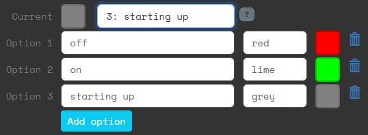 When a status light has three or more options, the interfaces change slightly.