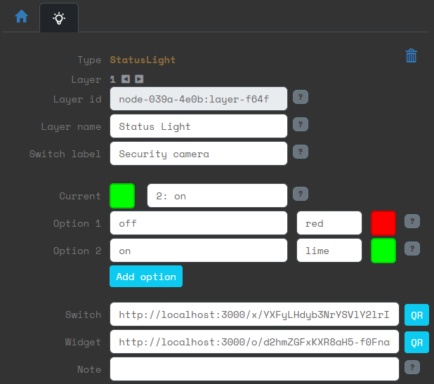 In the status light properties, there are two URLs that can be used to access them: