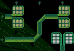 Netwalk ICE of strength 'Very strong' or 'Onxy' uses wrapping. This means that the elements from the border rows connect to elements on the border of the opposite site. This is indicated by small green arrows.